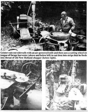FARM SHOW reported on Geister's many new uses for tires earlier this year (Vol. 13, No. 1). Since our first report he's come up with more new ideas and machines that help turn junked tires into valuable assets.