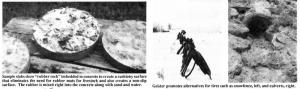 Geister sells rubber rock in 55-gal. drums for $16.50. Wholesale bulk orders sell for $50 per ton. Rubber strips sell for 31/2 cents per foot wholesale, and sidewalls sell for 10 cents each. Geister sells a booklet, "The Second Life of Tires", for $12.50. It out-lines 100 alternative uses for tires. He also offers a 2-hour video that describes how to cut tires using basic tools, how to use tires for soil erosion control practices, how to make "rubber rock", and how to build play-ground equipment