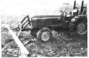 I made a front-mount lift frame for a PVC rope wick that's simple but works great. I used the frame from an old Deere KBA disk. It attaches to the front weight brackets on the tractor and also to the grill guard. The PVC pipe lays on a long piece of angle iron. The ends of the iron pipe from the disc frame are notched and 8-in. pieces of angle iron are welded to each. The angle iron that sup-ports the PVC is then bolted to these brackets on the iron pipe. A single cylinder raises and lowers the wick applicator by tilting the lift arms up and down as needed. (Don Gibbs, 5428 Onondaga Rd., Onondaga, Mich. 49264)