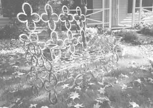 To make the furniture, Gonzales simply welds the horseshoes together, bending them first when necessary. His horseshoe furniture collection includes love seats, tables, rocking chairs, bar stools, boot jacks, plant stands, towel holders, candle holders, flower pot holders, clocks, key holders, and a pair of roping cowboys next to a covered wagon. He even built an ornamental grape cluster and a 5-ft. high horseshoe Christmas tree.