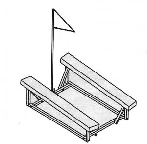 The "Tote-A-Dock" is 42 in. long by 23 in. wide and fits easily in a pickup for trans-port. Its frame is built of 16 ga. 1-in. sq. tubing and its runners of treated 2 by 4's covered with marine carpet. Runners automatically adjust to accommodate any shaped boat hull. (It will also handle many jet ski's.)