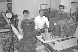 Neil Meador, Allen Thompson, and Mark Russell have been testing a 30 hp single-phase Written-Pole motor that can run off the standard power lines of any rural cooperative because it requires a relatively low starting current.