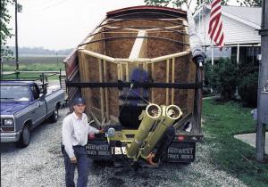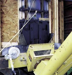 "It takes about an hour to install the box and mount the auger and about 30 minutes to remove them. Lengths of channel iron are used to secure the box to the truck's stake pockets. I use a length of channel iron that mounts across the back of the truck to support the pulley that raises or lowers the auger. The top of the box is equipped with curved steel bars for attaching a hand-cranked roll tarp."