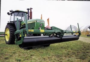 "At the recent Farm Fest show we mounted the roller on a 3-pt. hitch made by Buckeye Tractor Co. in Columbus Grove, Ohio. How-ever, any front-mount 3-pt. hitch could be used. A 12-ft. model sells for $3,120 and a 15-ft. model for $3,900. We also make pull-type rollers available in widths from 15 to 22 ft. A 19-ft. pull-type model sells for $5,875." Contact: FARM SHOW Followup, T & P Machine and Mfg., 11 West Second, Winthrop, Minn. 55396 (ph 507 647-5370).