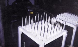 There are no moving parts and no power is required. The Plug-Buster consists of a heavy-duty iron plate that stands on legs 24 in. above the auger sump. The plate contains 3-in. sq. grids, each of which is fitted with a 6-in. long spike. A second model is fitted with sickle sections.