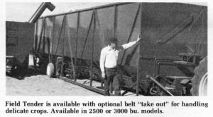 Field Tender Helps Avoid Bottlenecks COMBINES Miscellaneous 1-3-14 A huge portable holding bin called the Field Tender is designed to eliminate costly bottlenecks during harvest. It holds 2,500 bu. and lets combines keep rolling if trucks get tied up at the elevator, a drying system gets overloaded, or some other "bottleneck" develops.