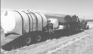 "The trailer was originally used by a company to haul backhoes. I was able to buy it for only $3,500. Normally, used drop deck semi trailers like this sell for $12,000 to 15,000. It's very maneuverable so I can back it up fast. I had been loading my planting supplies on wagons or on a 2-ton truck, but I didn't like having to put the tank on and off every year. Now after I'm done planting I don't have to take anything off the trailer.