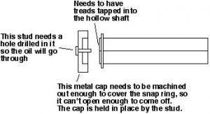 Marvin Jantzi, Augres, Mich.: "The snap ring on the pto shaft on my 1100 Massey Ferguson tractor kept coming off, allowing the shaft to slip out. The dealer suggested a method someone else had used to solve the problem. We tried it and it worked. We machined out a metal cap enough so it covers the snap ring so it can't open enough to come off. The cap is held in place by a stud, which we drilled holes in to allow oil to go through. We also tapped threads inside the shaft for the stud to screw in. This fix worked."