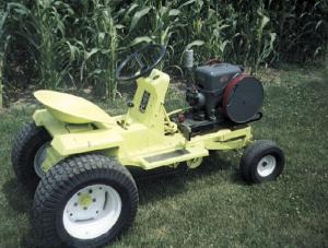 Here's a great new way to display an antique gas engine. You can mount it on an old lawn mower frame and then drive it around. The kids love it and it's an eye-catching way to show off your hard work. (Joe Eliker, 408 E. Wayne, New Madison, Ohio 45346 ph 937 996-1501)