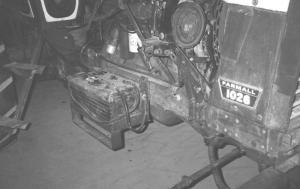 Tractor Battery Moved So It's Easier To Service FARM SHOP Miscellaneous 24-1-39 Dale Spoerl, Elizabeth, Ill.: "The battery on my Farmall 1026 tractor was originally located under the cab where it was difficult to reach. It extended half way into the cab and I couldn't get at it unless I opened both front windows. I moved the battery to the right side of the tractor where it's a lot easier to service. I made an angle iron frame to hold the battery and bolted it to the side of the tractor. I added a step at the bottom of the frame to make it easier to reach the fuel tank's fill opening. I filled the opening where the battery had been with foam rubber to keep heat from the tractor's engine out of the cab. The foam rubber also keeps the cab quieter and cooler in the summer.
