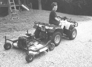 "It'll cut grass and weeds up to 3 ft. high with no problems," says Barnes, who operates a welding shop. He uses a Honda 300 4-wheeler ATV to pull the rig.
