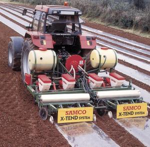 The "Samco X-Tend" machine has been used for years to grow corn in Ireland, where growing conditions are marginal. As plants emerge from the soil they pop right through the film, which protects emerging plants from frost and promotes rapid growth during early emergence.