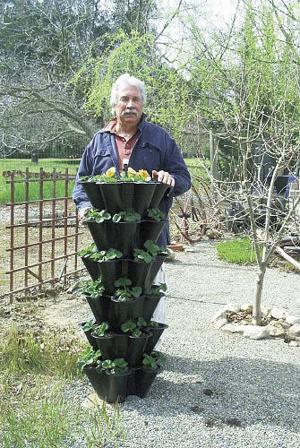 "With these towers, you can grow on asphalt, if necessary," says Blevins. "They're ideal for strawberries, vegetables, herbs, flowers or whatever."