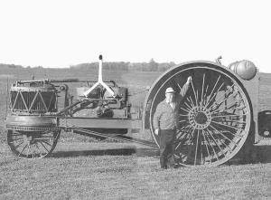 The Wallis Bear was built for belt and field work. It's powered by a 4-cyl., 1,480 cu. in. displacement internal combustion engine that develops 50 hp and delivers 30 hp to the drawbar. It has a 3-speed transmission with reverse. The engine can be fueled with either kerosene or gasoline.