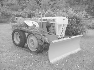 "I chose the Bolens tractor because it has a cast iron rear end and transmission which is much stronger than aluminum and should keep the tracks from snapping the rear axle. The tractor was given to me. I paid $35 for the front axle and $70 for the tractor tires that I used to make the treads. I already had the engine. My total cost was only about $150."