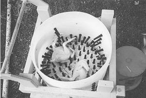 Then he discovered a friend's tub-style mechanical plucker. This simple home-built machine was patterned after a commercial plucker. It worked great so he decided to build one of his own.