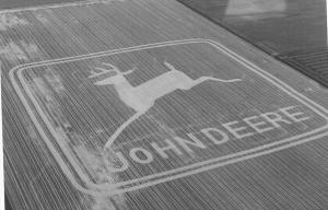 For several years now, this Nashville, Ohio farmer has been creating "paintings" in wheat stubble fields with a John Deere rotary mower and a Case-IH tractor.