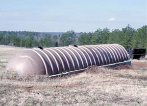 First, he cut the tank in half lengthwise, giving him a 30-ft. long section that was 8 ft. wide and 4 ft. high at the center. That would be the roof. He cut off one end to make an entrance.