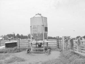 "We've used it for three years and couldn't be happier with it," says Wright. "The bin holds about 5 tons of feed. We have the feed delivered to our farm and augered into the bin. We use a rubber cord to open the bin's top lid from the ground.
