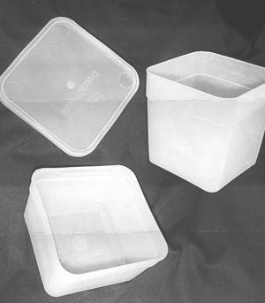 The pint size container sells for 59 cents plus S&H; the quart size for 69 cents plus S&H. A case of 100 pint-size containers sells for $53.10 plus S&H. A case of 100 quart-size containers sells for $62.10 plus S&H.