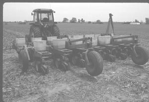 "It lets me plant both corn and soybeans accurately and saved a lot of money," says Meteer, who uses a Deere 4430 tractor to pull the planter. "I paid $300 each for the seven add-on row units. They were in rough shape so I installed new disc openers and bearings. Altogether I spent about $6,000. I saved at least $20,000 because a new Deere no-till drill sells for $25,000 to $30,000. I had rented no-till drills to plant soybeans but was never satisfied with the job they did and thought they were too expensive. The Kinze brush meters space seeds much more accurately than Deere soybean cups. It takes only about 15 minutes to switch from planting corn to soybeans."