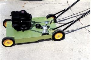 Garrett used 1/8-in. thick sheet metal to build the 21-in. wide deck. The blade is powered by a 3 1/2 hp Briggs & Stratton gas engine.