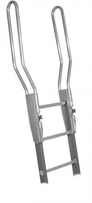 In seconds, you can slide it over the top of each ladder beam and, using the plastic knobs, attach it to the ladder without any tools.