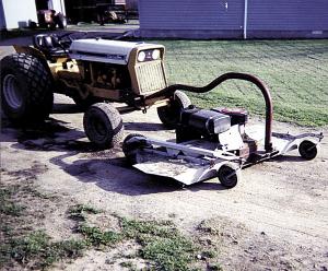 Goose Neck-Mounted Mower Deck FARM HOME Lawn Mowers (31h,38) 27-1-42 Thank you for the story on my gooseneck-mounted mower deck (Vol. 26, No. 3). It consists of a 60-in. mower deck that I mounted on front of my 1981 Cub Lo Boy tractor. Works great for mowing fence corners and ditches and also eliminates a lot of hand trimming around trees and buildings. The front of the deck is equipped with a home-built gooseneck ball hitch that allows the mower to swivel 360 degrees when turning or backing up.
