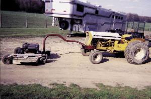 Thank you for the story on my gooseneck-mounted mower deck (Vol. 26, No. 3). It consists of a 60-in. mower deck that I mounted on front of my 1981 Cub Lo Boy tractor. Works great for mowing fence corners and ditches and also eliminates a lot of hand trimming around trees and buildings. The front of the deck is equipped with a home-built gooseneck ball hitch that allows the mower to swivel 360 degrees when turning or backing up.
