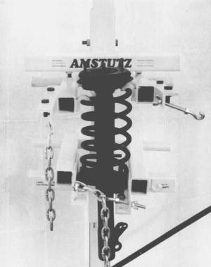 His tool can handle springs from 3 to 12 in. in diameter, including non-concentric models. It makes use of a hydraulic jack and allows the mechanic to work at eye level, thereby staying out of the spring's potential trajectory. A safety tie-down chain, combined with the double cross system, makes the compressor much safer to use, says Amstutz.