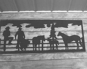"I really enjoy doing gate entrance signs for ranches. I've done various western scenes with horses and cattle, or wildlife scenes," he explains. "I once did 103 feet of deck railing that went around most of the house, along with stair railing and a gate for a home in Washington. I've also done a lot of security fence made out of square tubing."