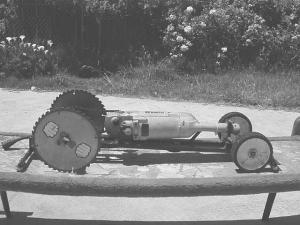 "This 9-in. grinder has the highest horsepower and torque rating we could find with many hours searching the internet," says Nelson. "We tried up to five saw blades for drive wheels. During one test the machine jumped the track and cut a large slice out of my dad's jeep truck fender."