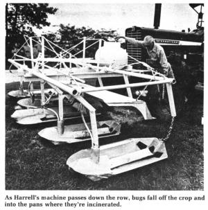 Insect Killer Zaps Bugs With Fire CROPS Insect Control 5-4-23 You've never seen anything like this pan-frying, bug-killing "Insecticider" built by farmer-inventor Robert Harrell, of Dyersburg, Tenn. Designed to replace chemical insecticides on growing crops, the new exterminator has been proven in preliminary one-pass tests to control about 75% of the insects. A second pass through the field ups the percentage.
