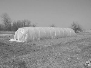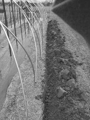 The Goodmans use 24-ft. wide plastic sheeting so there's a little extra sticking out on the sides to bury under 4 to 6 in. of dirt.