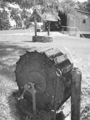 The water wheels fit nicely with Hake's pump jack collection and other antiques of farm equipment he used and collected over the years. He also has arrowheads, gems, his sister's doll collection, and other family treasures preserved.