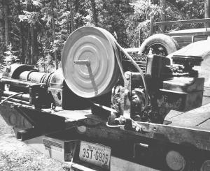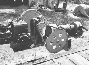 He bought the winch at an auction sale and paid $50 for it. Both pulleys came off an old grain bin unloading auger.