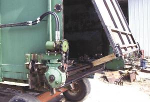 It worked well enough that they converted one of their 16-ft. forage boxes that had worn out. They beefed up the roof in the front opening and installed a hydraulic motor from a Deere combine soybean head.