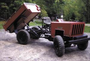 The original steering wheel was moved to the center by hooking the steering column up to two universal joints. In the woods, the steering wheel is locked, and the vehicle is steered by articulation. On the highway the rig is steered with the front wheels. In tight situations, both steering systems can be used. "The articulation works great in the woods, because the back end can walk right around trees," says Culham. "The hydraulic dump box's sides can be let down so I can reach over and throw wood in.