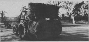 We've seen the development of single bale 3-pt. mounted round bale carriers, double bale carriers and, just last year, a triple big bale carrier which showed up in France. But this new 3-pt. mounted carrier, built in Scotland, beats them all. The rear-mounted, lightweight carrier will handle as many as 4 big bales at once, safely balancing two bales over the rear tractor wheels and two down close to the ground.