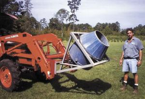 He made the mixing drum out of a rusty 240-gal. well tank.