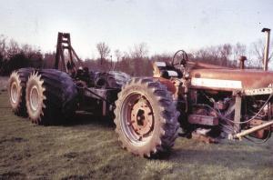 "At first we tried using the tractor's pto to drive a truck transmission, but the transmission couldn't handle the torque. The sides of the gearcase split out, and the driveshaft got bent so bad it almost looked like a pretzel. So we switched to hydraulics."