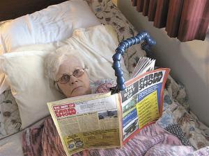 "My mom has always been an avid reader and especially likes to read articles in FARM SHOW about me. But recent health problems have made this next to impossible. She fell and fractured her left arm and a few days later, suffered a stroke, immobilizing her right arm. So she really needed someone or something to hold the reading material for her."