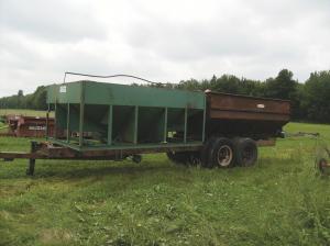 "If both wagons are full, I don't unload them at the same time because that would put too much weight on back of the tractor. Instead, I unload the back wagon first. Once the back wagon is nearly empty, I start unloading the front wagon into it."