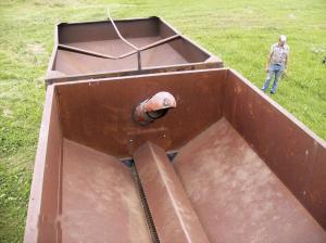 "Maybe it isn't the prettiest grain wagon in the world, but it didn't cost much to build. I paid a total of $500 for both wagons and $100 for the truck chassis," says Verleun. "Even though I was able to buy the two wagons cheap, I didn't want to put them on 2 separate trailers because that would add to the cost and tie up another tractor.