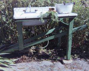 “I have several faucets around my garden and I can hook the sink up to any of them,” says Carpenter. “I use it on all my root crops including beets, potatoes, and carrots. I added a length of L-shaped pvc pipe to the sink’s drain so my feet don’t get wet while I’m washing vegetables. I stand in front of the sink and the water drains out the back. At the end of the growing season I just disconnect the hose and roll the sink into our tool shed.”