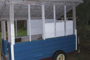 The sheds are built on old camper frames. The Kingston, Wash., resident bought the large trailer (8 by 14-ft. frame on a double-axle) already stripped down for $400. He built the shed frame and floor from rough lumber and recycled boards he had on hand. He bought steel for the shed-style roof. He took apart and sold scrap from a smaller (8 by 10-ft. single-axle) camper to create a shed for kindling.
