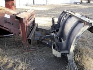 The platform-mounting bracket became the new frame for his plow blade. He welded a 3 by 6-in. rectangular tube across the bracket for extra support. “I found an old 11-ft. plow blade from a county truck that was exactly what I needed,” says Dewey. He rebuilt the blade mounts to fit the combine’s mounting bracket and welded it together. “Raising and lowering the feederhouse gives me more than 2 ft. of lift on the plow blade,” Dewey says. “When I’m plowing I put the hydraulics in float and the blade glides right along.”