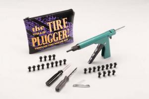 The Plugger is a spring-loaded gun that “drives” the plug into the hole. The shaft of the plug expands under pressure to fill the puncture. The mushroom head of the plug seats on the inner wall, allowing no air to escape.