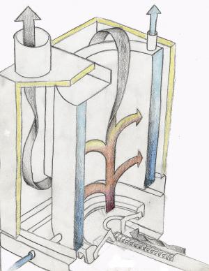 Maertens says the design produces maximum heat recovery without creating problems. Other coal burning designs avoid the narrow passageways and long travel due to a tendency for coal ash to plug them up.