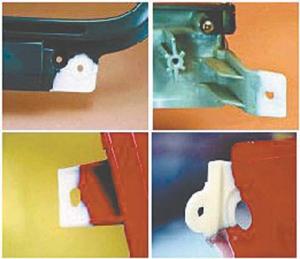 To fabricate a new part, such as a broken tab on a plastic part, warm the kit’s reusable molding bar to 120º F until it’s like putty, and wrap it around another tab. Then let it harden before removing it.